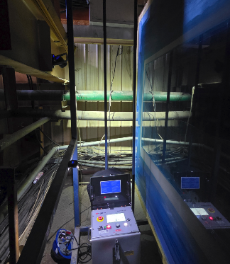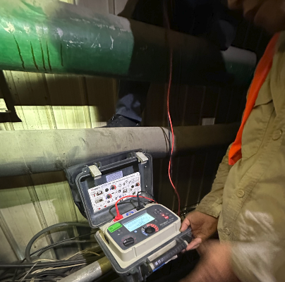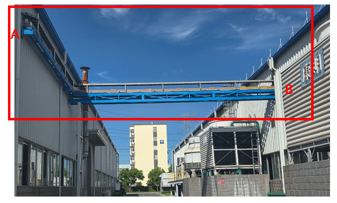 被测电缆:电缆为三相四线制的密集母线,且每相又分为2个母排,绝缘材料为全树脂包裹,全程使用桥架敷设,如下图所示,由A点至B点,全长约28米左右。