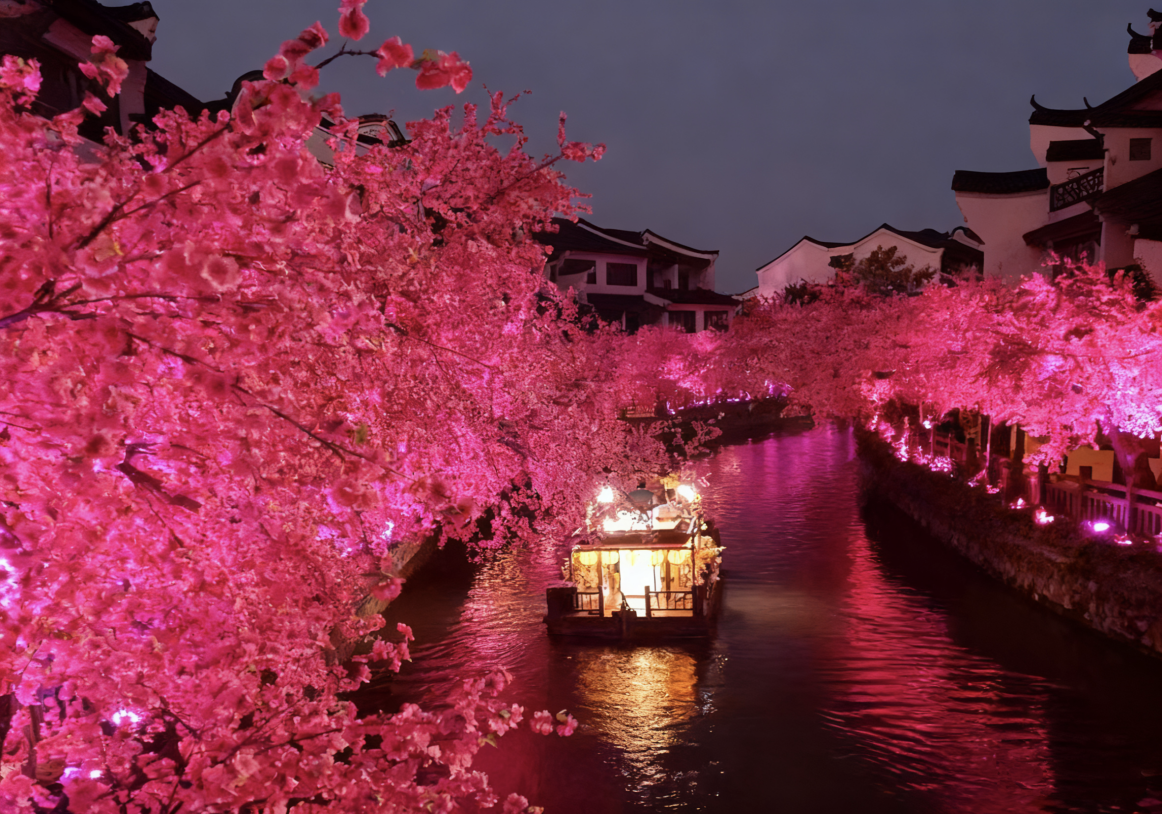 在龙之梦太湖古镇全新景点“桃花岛”的夜景建设中,使用了三晞灯光生产的专业防水染色灯。三晞防水染色灯凭借其均匀的色彩表现与在户外环境下的持续稳定工作能力,满足了桃林区域夜间氛围照明的长期需求,为景观的视觉呈现提供了关键的设备保障。