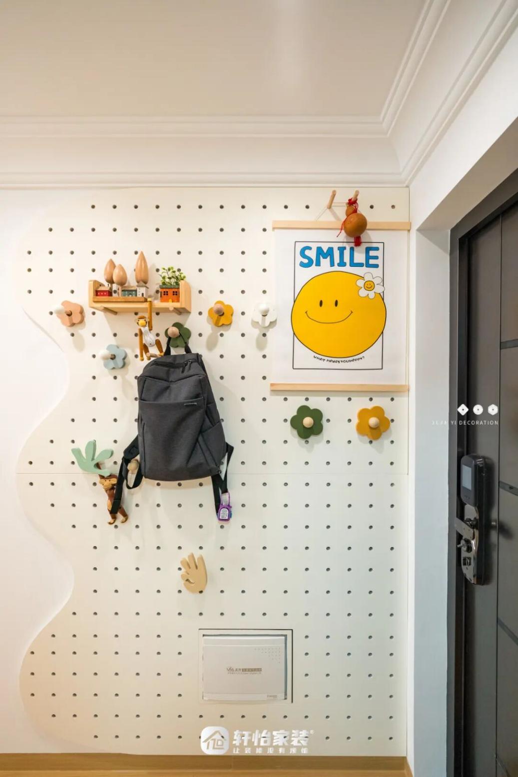 在客厅电视墙、厨房空白墙或阳台上安装搁板、挂钩、洞洞板,就能解决小物件杂乱问题。